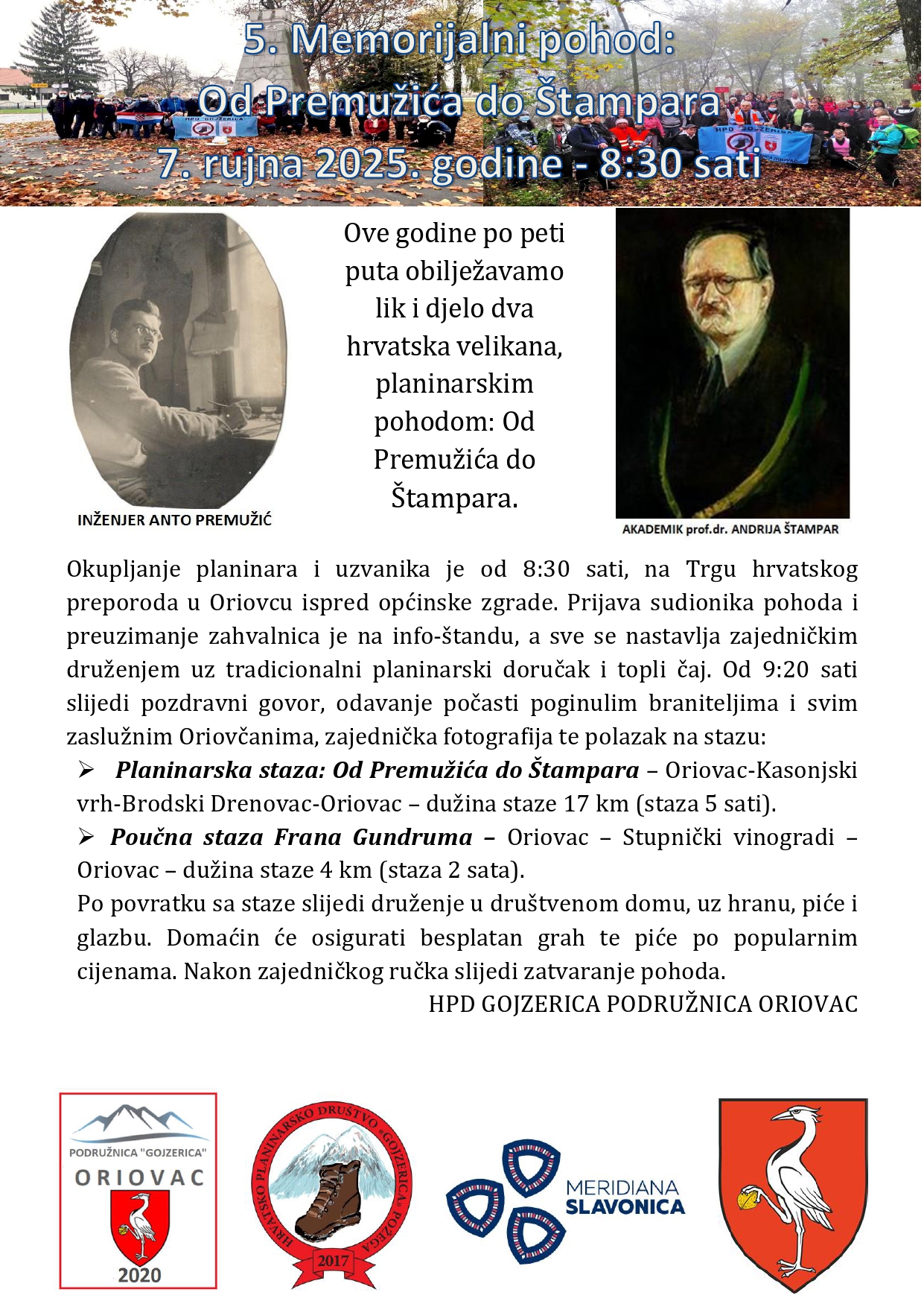 Ovogodišnja ruta nosila je naziv “Od Premužića do Štampara” i protezala se na dionici Oriovac – Kasonjski vrh – Brodski Drenovac – Oriovac, u dužini od 17 kilometara. Hodnja je trajala oko pet sati, a na njoj je sudjelovalo mnoštvo planinara i ljubitelja prirode iz cijele regije.