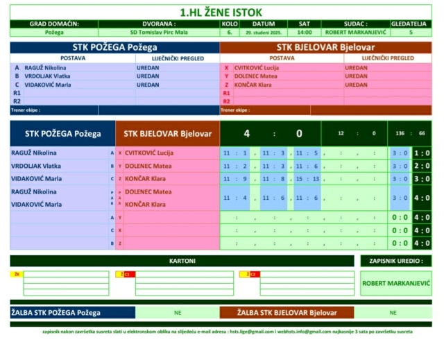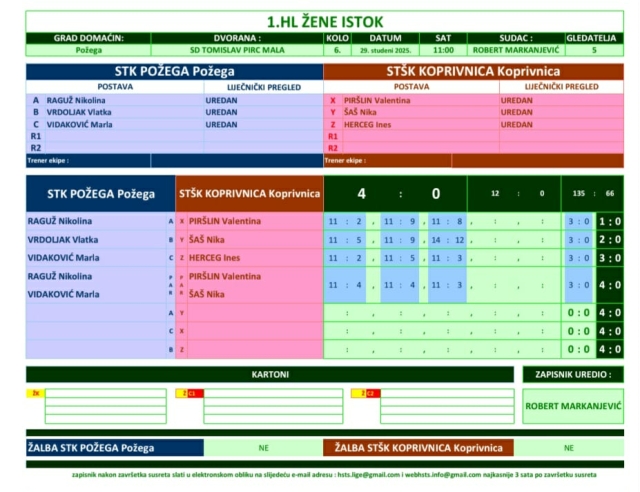 Požežanke su nastavile sa sjajnim igrama i obje utakmice pobijedile sa uvjerljivih 4:0. Prvo je svladana ekipa STK Koprivnica, a nakon toga su požeške stolnotenisačice istim rezultatom pobijedile STK Bjelovar. Za Požegu su igrale Vlatka Vrdoljak i Nikolina Raguž i Marla Vidaković.