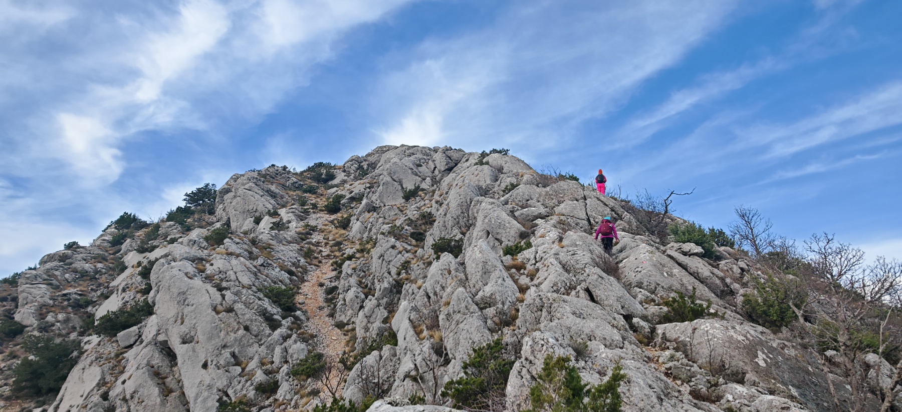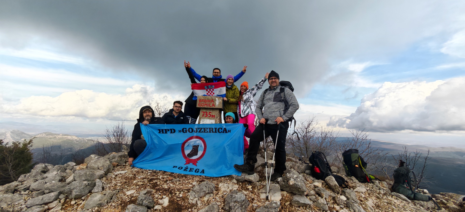 Subotnje jutro, 3. siječnja, donijelo je glavni cilj izleta – uspon na Babinu Gomilu na planini Rujnici. Staza ih je vodila kroz krš, a pri samom vrhu dočekalo ih je klizavo kamenje i pokoja kišna kap, kao podsjetnik da planina uvijek traži poštovanje. Ipak, uspon je uspješno savladan, a nagrada su bili pogledi, fotografije i onaj poznati osjećaj – da su opet pobijedili sami sebe.
