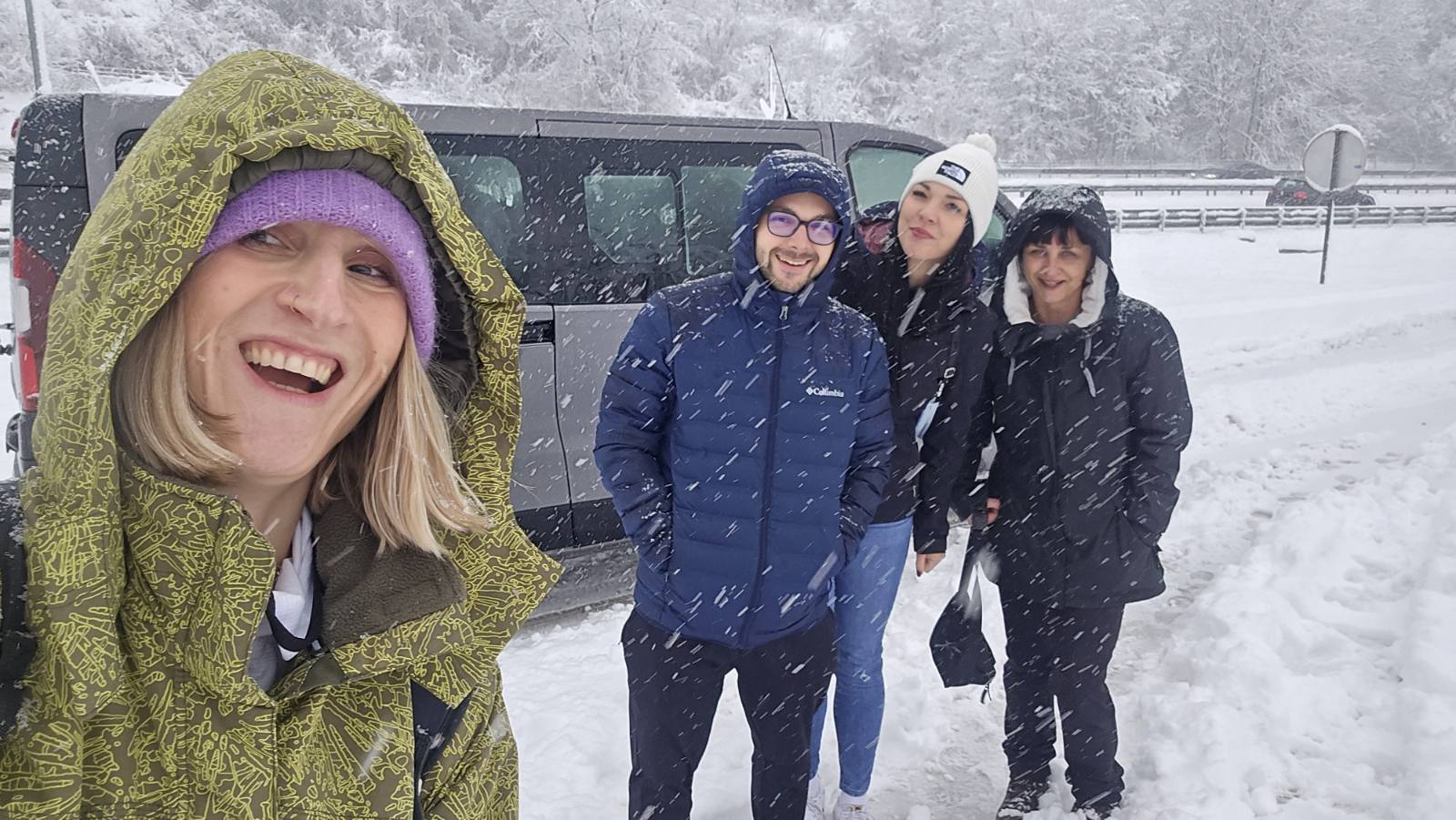 Nedjeljno jutro donijelo je promjenu planova. Loše vrijeme natjeralo ih je na povratak, ali avantura tu nije stala. Kiša u Mostaru uz jutarnju kavu, zatim nastavak prema Konjicu, gdje su – mudro i pravovremeno – kupili lance za kombi jer, kiša je ubrzo prešla u gust snijeg, a planinski putovi pretvorili su se u pravu zimsku bajku. Prizori su bili fenomenalni, ali trebalo je podosta umijeća hrabrom vozaču da ih izvede iz snježne oluje. Probijanje kroz snježne dionice do Brankovića u blizini Žepča i toplina restorana Dubrovnik, uz tanjur domaćeg gulaša, bili su savršen završetak ove male ekspedicije.
