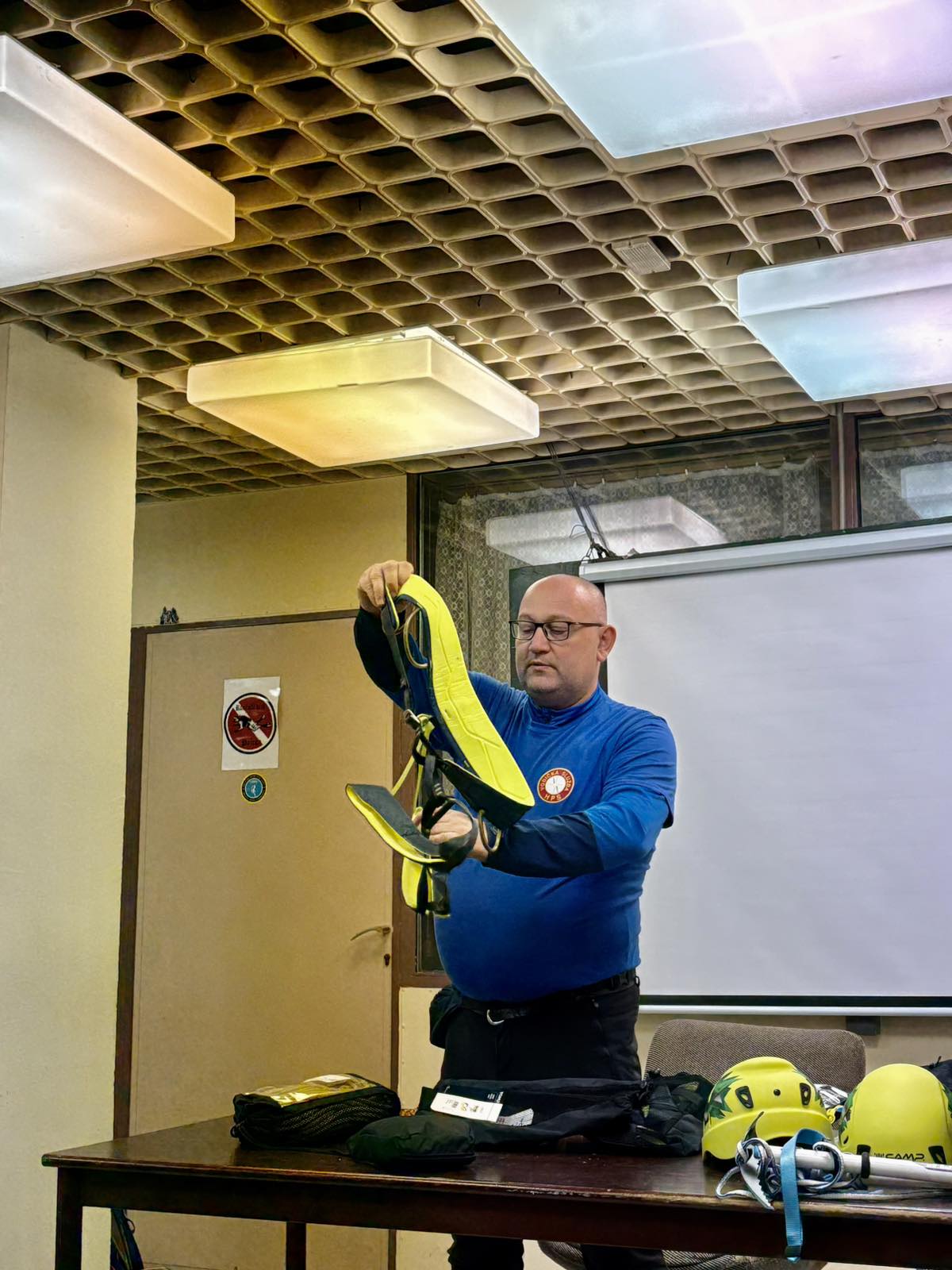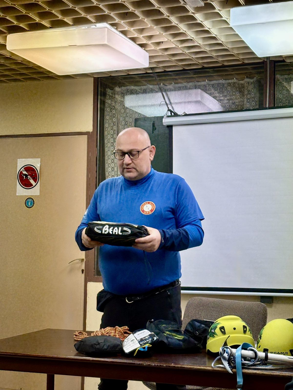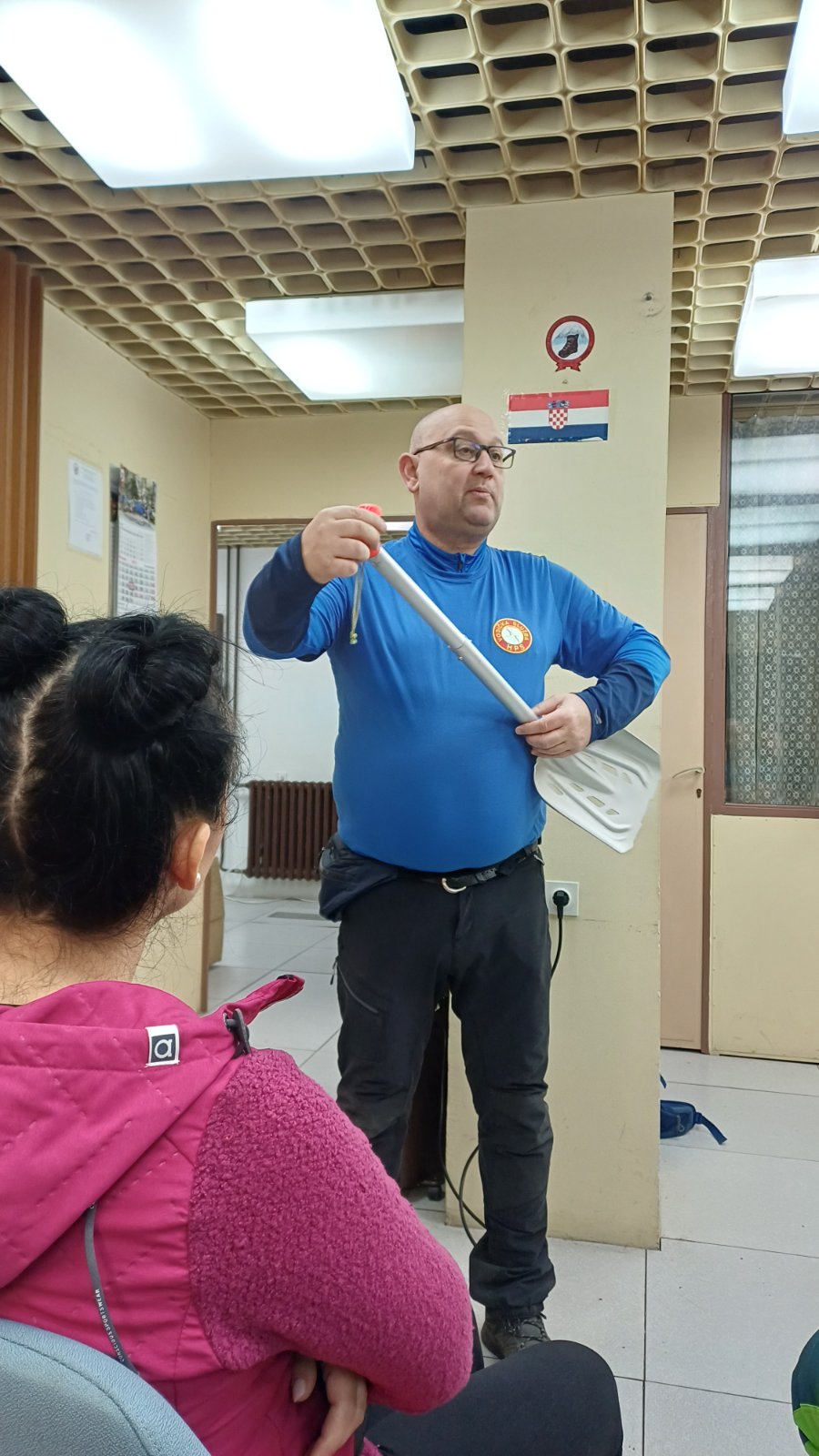 Zbog kiše i nedostatka snijega na Papuku i ostalim slavonskim gorama, vježba je održana u prostorijama društva. Višeslav Turković, licencirani vodič A i B standarda HPS-a, vodio je ovu vježbu upoznavši tako polaznike za koju se sve namjenu koristi tehnička oprema, uz poseban naglasak na opremu za zimske uvjete.