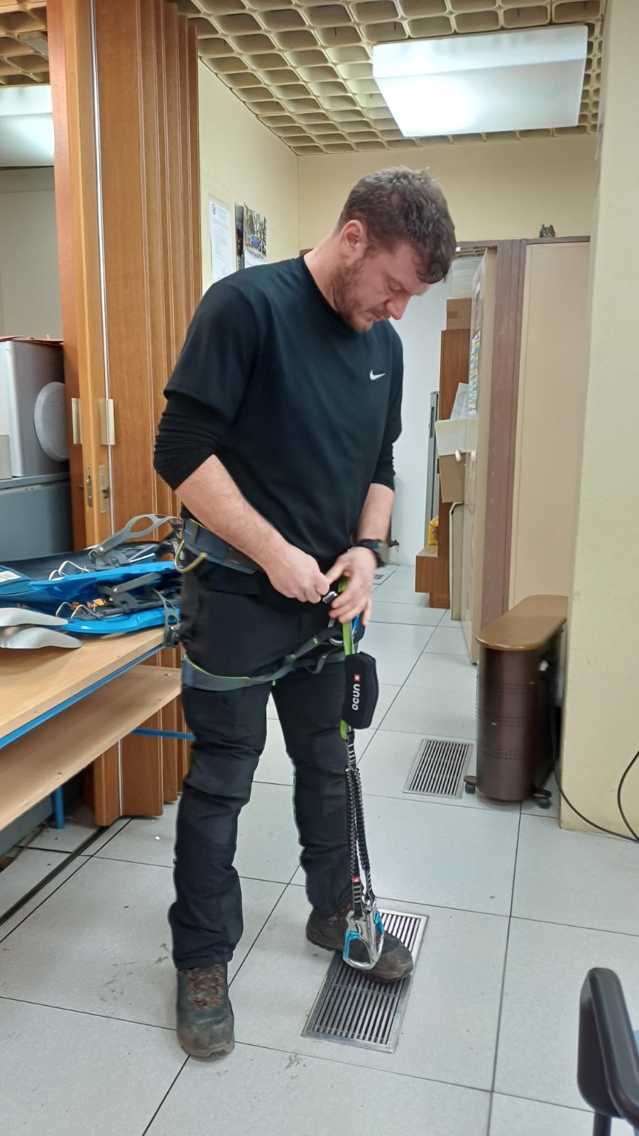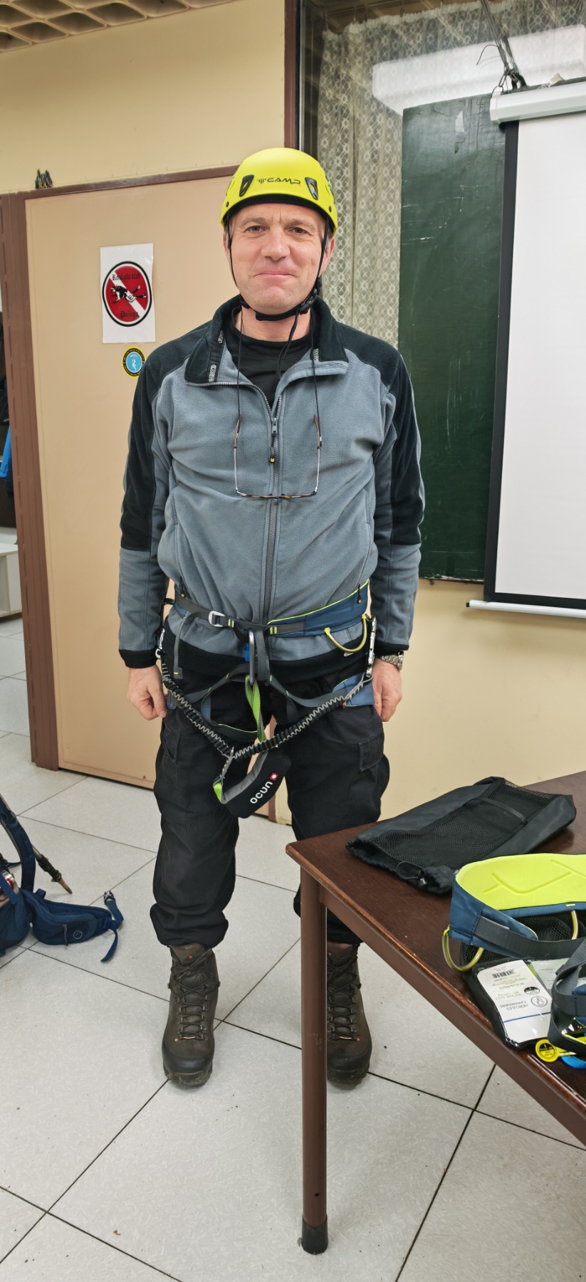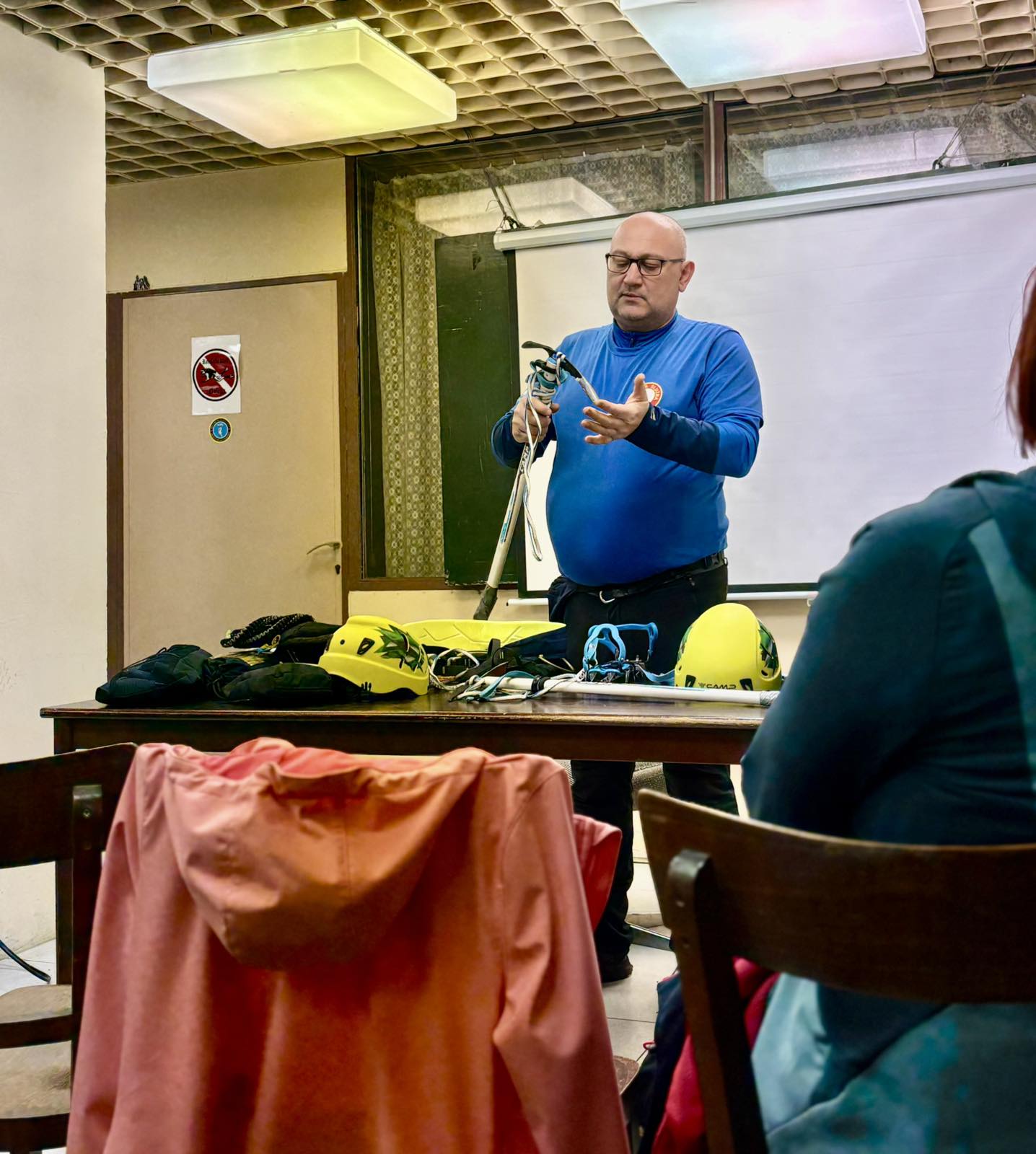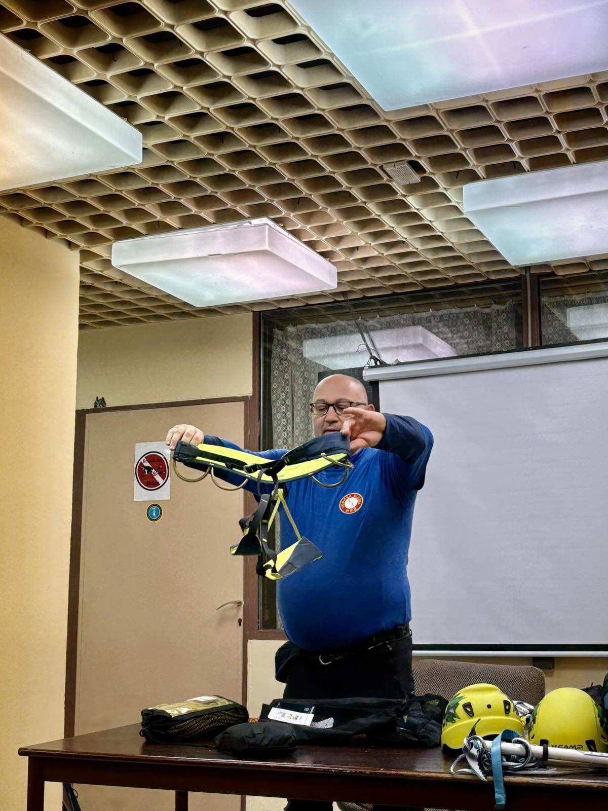 Zbog kiše i nedostatka snijega na Papuku i ostalim slavonskim gorama, vježba je održana u prostorijama društva. Višeslav Turković, licencirani vodič A i B standarda HPS-a, vodio je ovu vježbu upoznavši tako polaznike za koju se sve namjenu koristi tehnička oprema, uz poseban naglasak na opremu za zimske uvjete.