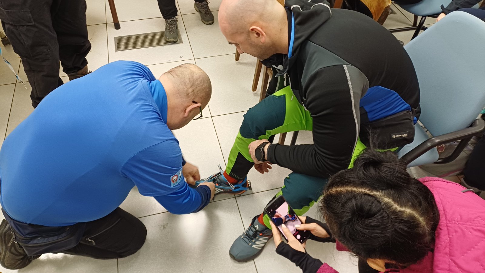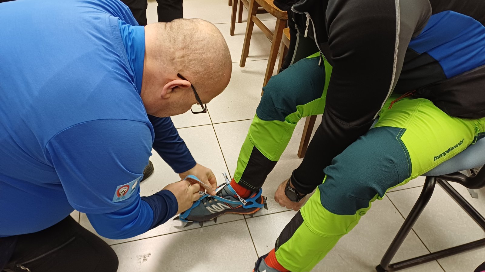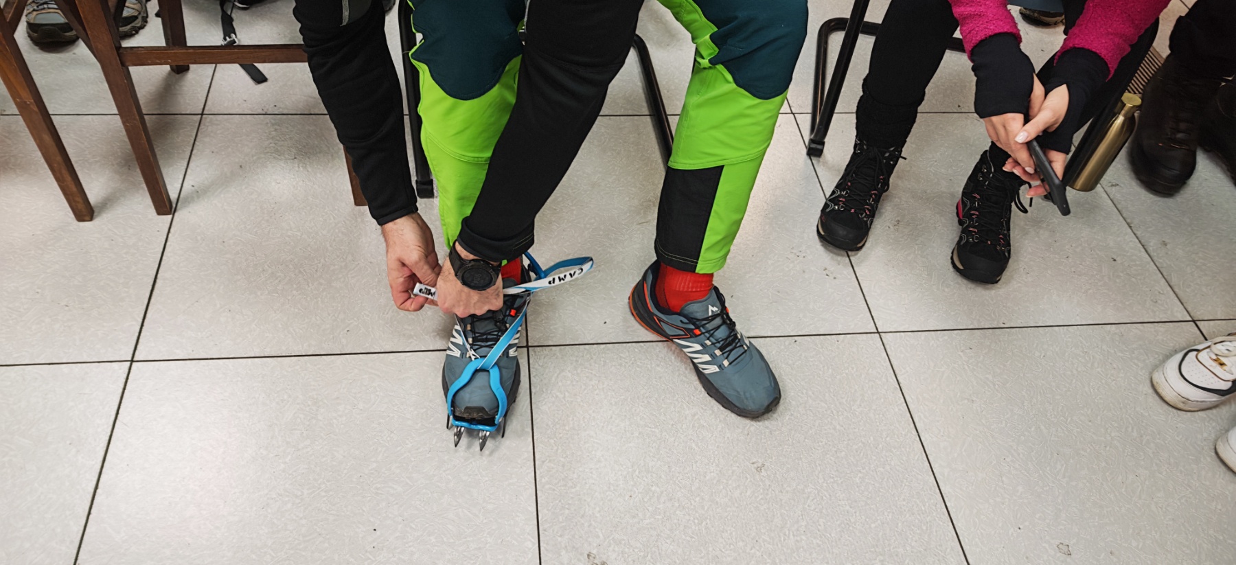 Polaznici planinarske škole mogli su obuti dereze i krplje te probati hodati s njima, uz detaljno objašnjenje u kojim uvjetima se koristi koja oprema. Objašnjeno im je da se krplje nose po dubokom snijegu u kombinaciji sa planinarskim štapovima, dok se dereze nose u kombinaciji s cepinom, pojasom i kacigom.