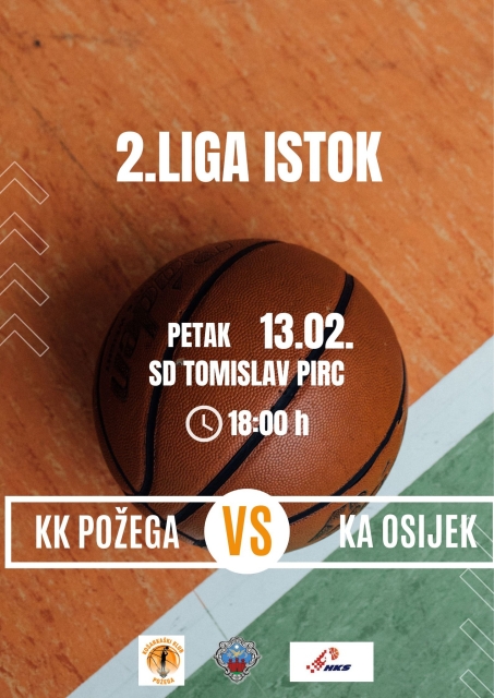 U petak, 13. veljače 2026. s početkom u 18,00 sati košarkaši Požege će u Sportskoj dvorani Tomislav Pirc protiv Košarkaške akademije Osijek odigrati utakmicu 16. kola 2. KL – Istok.