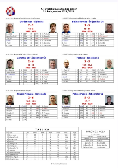U posljednjem, 22. kolu Nade će na Gradskoj kuglani ugostiti Fortunu (Đakovo) i oprostiti se od ove lige jer će od jeseni igrati u elitnom državnom rangu – Superligi. Taj susret na rasporedu je u subotu, 14. 03. 2026. s početkom u 15,00 sati.