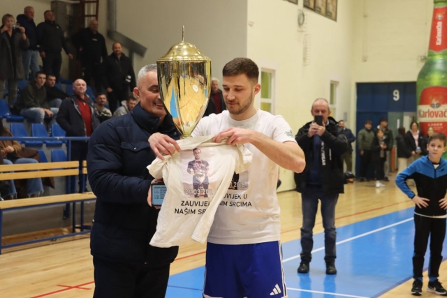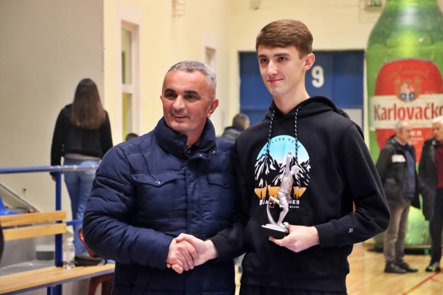 Njegov suigrač Krešimir Plešić kao najbolji igrač 34. BMNT “Požega 2025” primio je Trofej “Bruno Boban“.