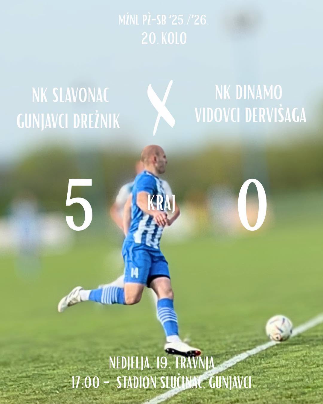 Vidovački Dinamo uvjerljivo poražen na gostovanju kod Slavonca (Gunjavci/Drežnik) u susretu 20. kola MŽNL
