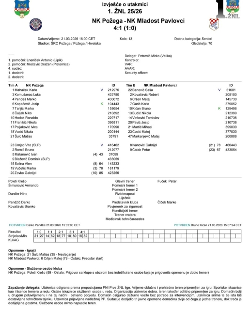 Pobjedu Požegi donio je napadač Nikola Vasić koji je u samo pet minuta došao do hat – tricka (77., 80., 82.).