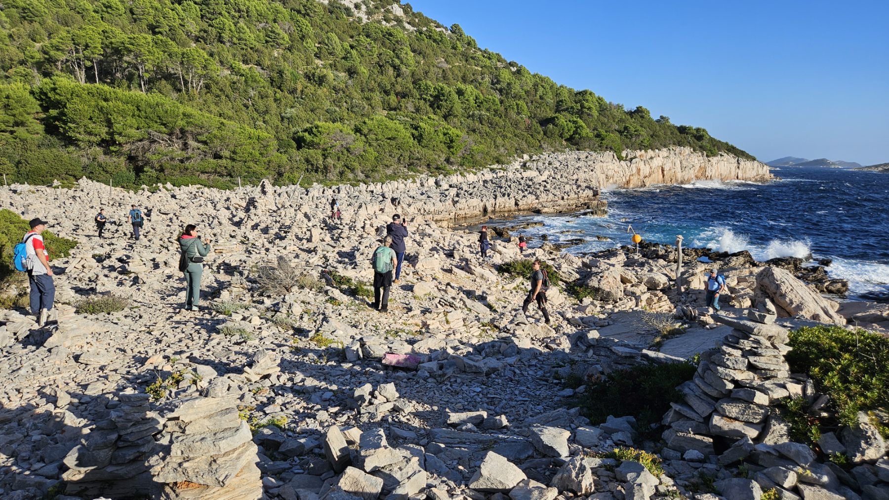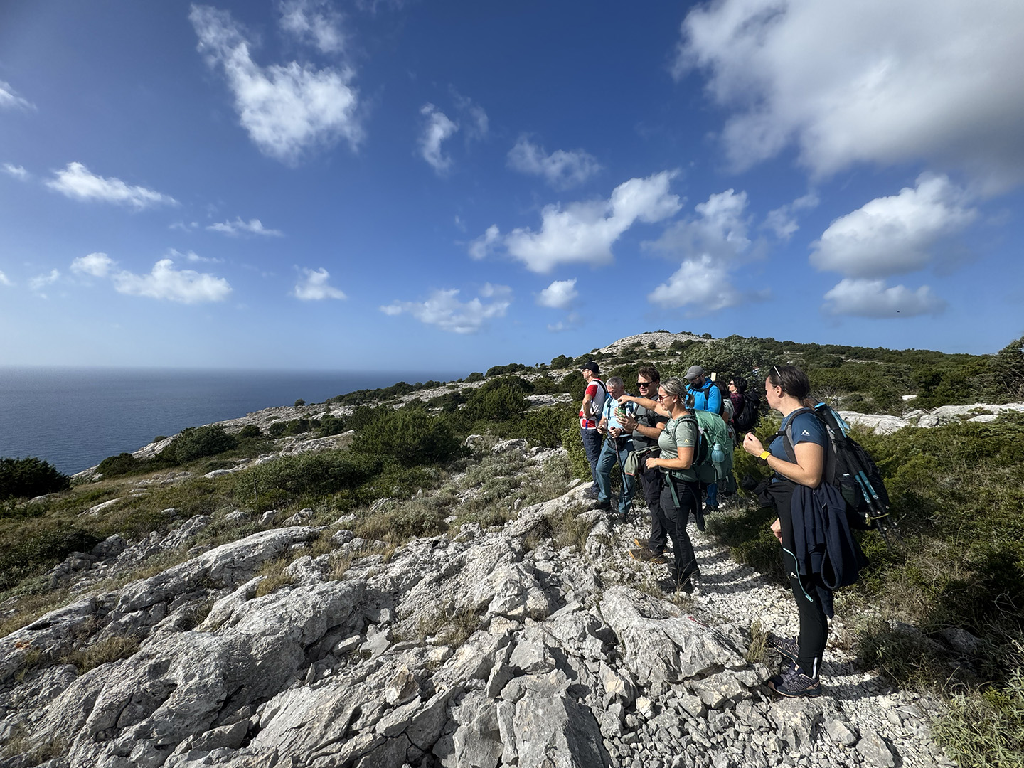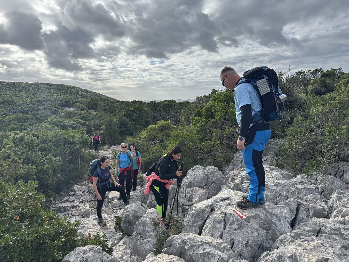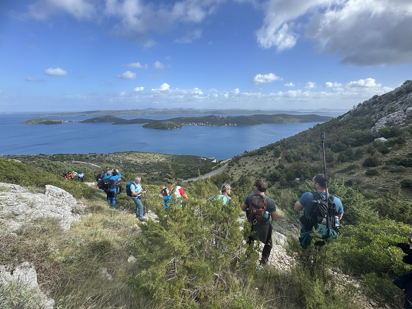 Prvi dan bio je posvećen Dugom otoku. Dolaskom u Zadar, uslijedio je prijevoz trajektom i iskrcaj u Brbinju. Ekipa se bacila na uspon na vrh Orljak. Kretalo se od nekadašnjeg kamenoloma, uslijedio je uspon po kozjoj stazi, a bilo je tu malo penjanja, malo hodanja po ravnici, malo “upadanja u depresiju” (ali samo topografsku, naravno!), da bi na kraju oštrim, kamenitim usponom izbili na vrh. No, trud se isplatio: na vrhu su uslijedili zasluženi odmori i pogledi koji liječe bol u mišićima.