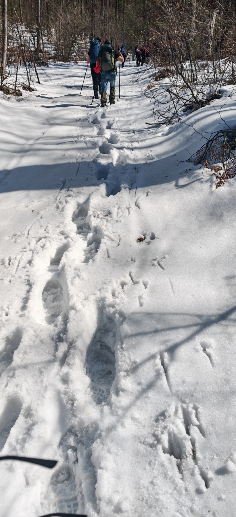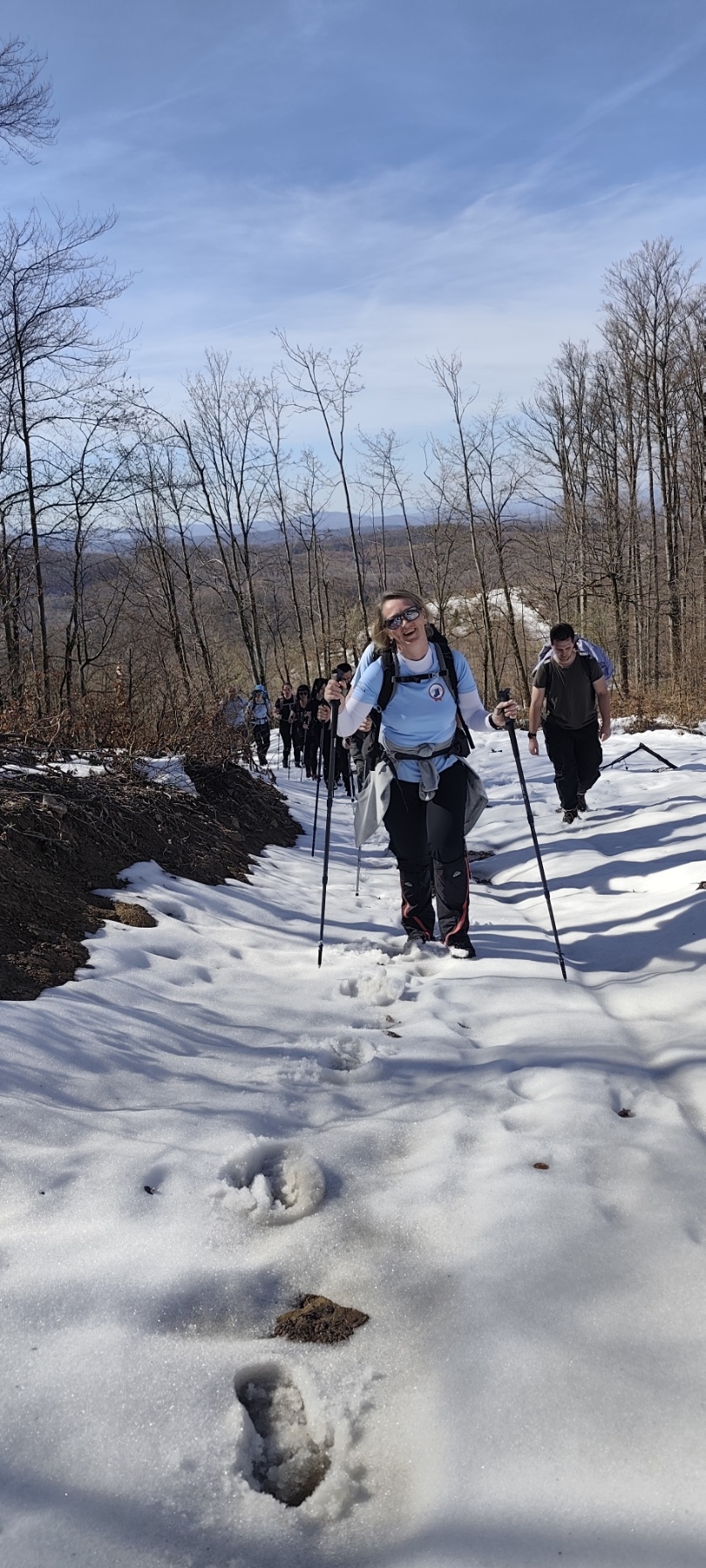 Nakon polovice prijeđenog puta, proljetnu stazu zamijenili su duboki snijeg i bljuzga. Ova promjena podloge učinila je stazu klizavom i teškom za hodanje, što je značajno otežalo kretanje. Svejedno grupa je hrabro prihvatila izazov te je uz međusobnu podršku i strpljenje uspješno svladala sve prepreke i stigla do cilja.