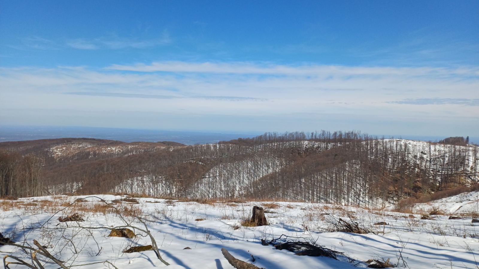 Na Crnom vrhu uslijedila je zaslužena pauza od tridesetak minuta. Bilo je to vrijeme za predah, okrijepu i uživanje u pogledima na osunčani Papuk. Naravno, trenutak uspona na vrh ovjekovječen je zajedničkom fotografijom sa službenom zastavom društva. Ovaj uspjeh dodatno je podigao ionako odlično raspoloženje, pa je ekipa puna ushićenja krenula natrag.