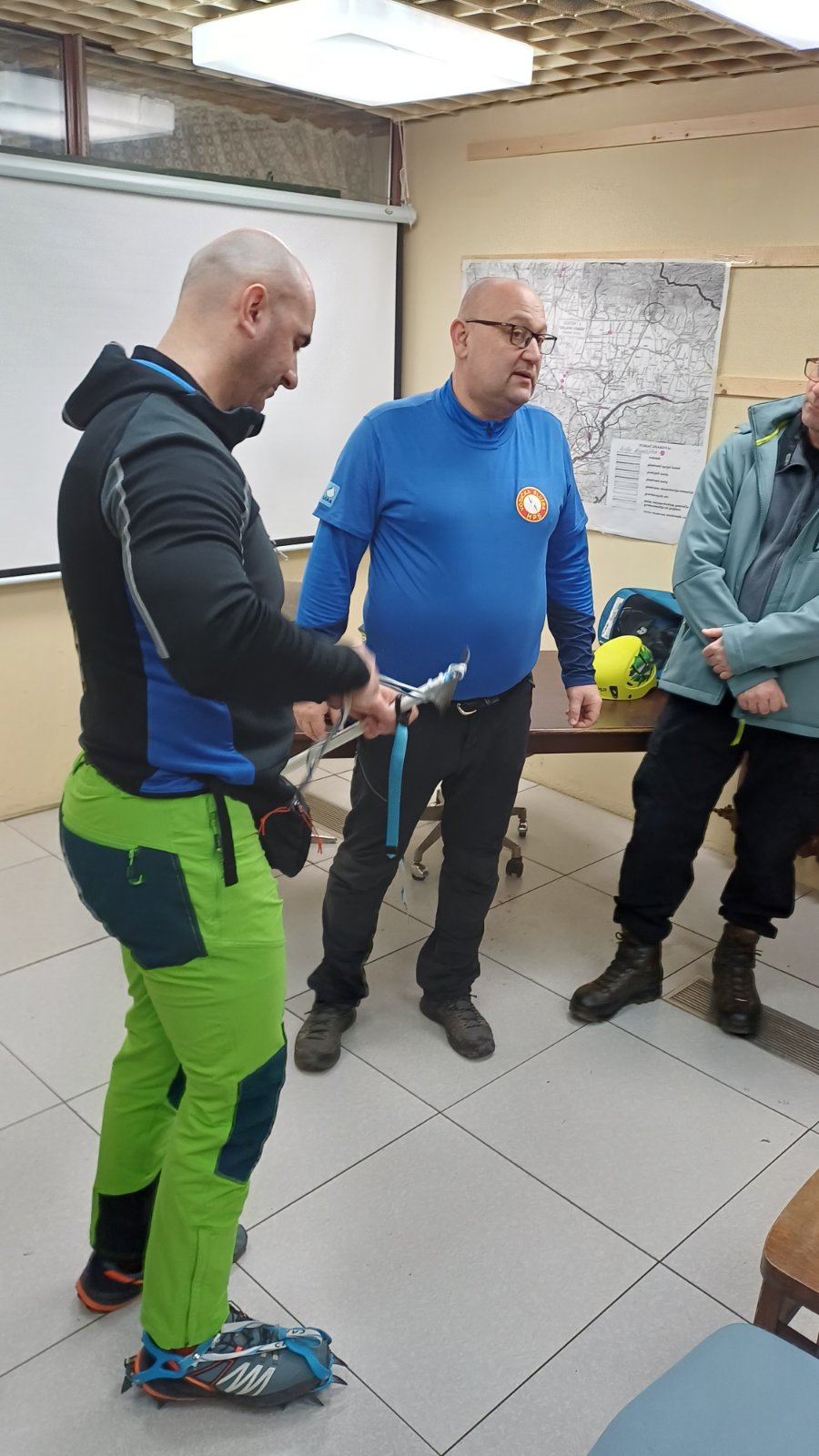 Zbog kiše i nedostatka snijega na Papuku i ostalim slavonskim gorama, vježba je održana u prostorijama društva. Višeslav Turković, licencirani vodič A i B standarda HPS-a, vodio je ovu vježbu upoznavši tako polaznike za koju se sve namjenu koristi tehnička oprema, uz poseban naglasak na opremu za zimske uvjete.