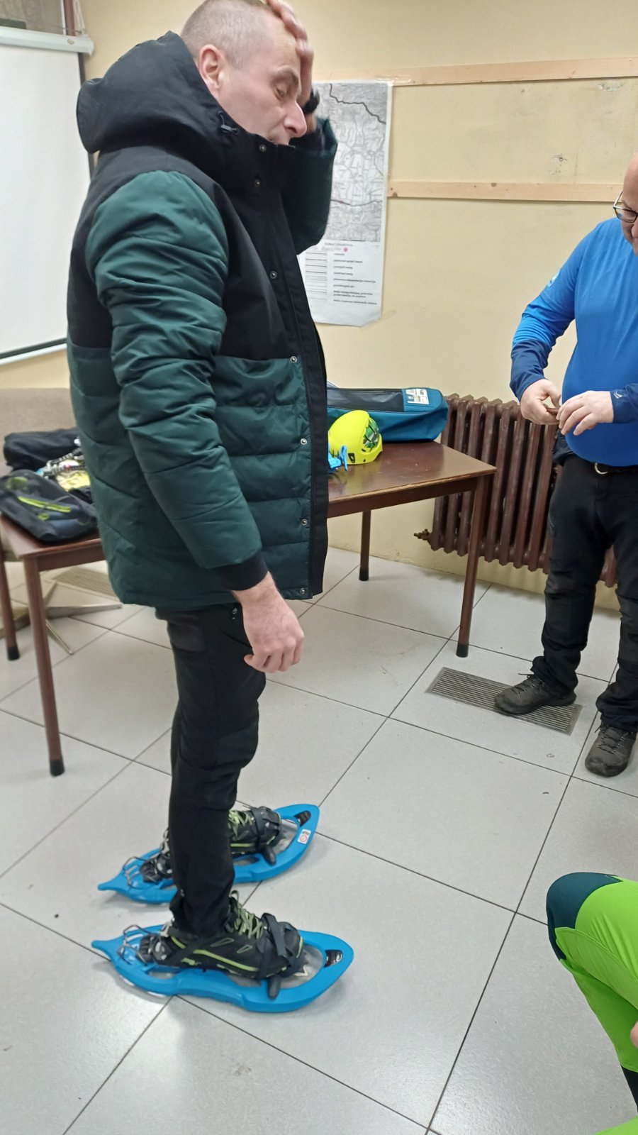 Polaznici planinarske škole mogli su obuti dereze i krplje te probati hodati s njima, uz detaljno objašnjenje u kojim uvjetima se koristi koja oprema. Objašnjeno im je da se krplje nose po dubokom snijegu u kombinaciji sa planinarskim štapovima, dok se dereze nose u kombinaciji s cepinom, pojasom i kacigom.