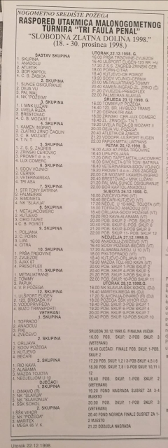 Od 1992. do 2000. turnir se zvao “Slobodna zlatna dolina” dok od 2001. do danas nosi naziv “Božićni malonogometni turnir Požega”.